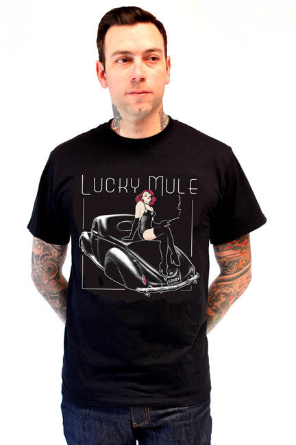 Designed by Lucky Mule. Three color print, white, red and off white ink on black.