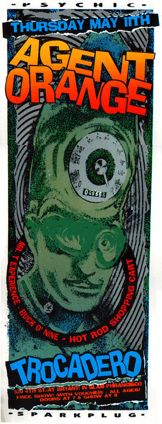 Agent Orange, Mr T Experience, Buck Nine and Hot Rod Shopping Cart Screen printed show poster for Trocadero SF May11 1995.