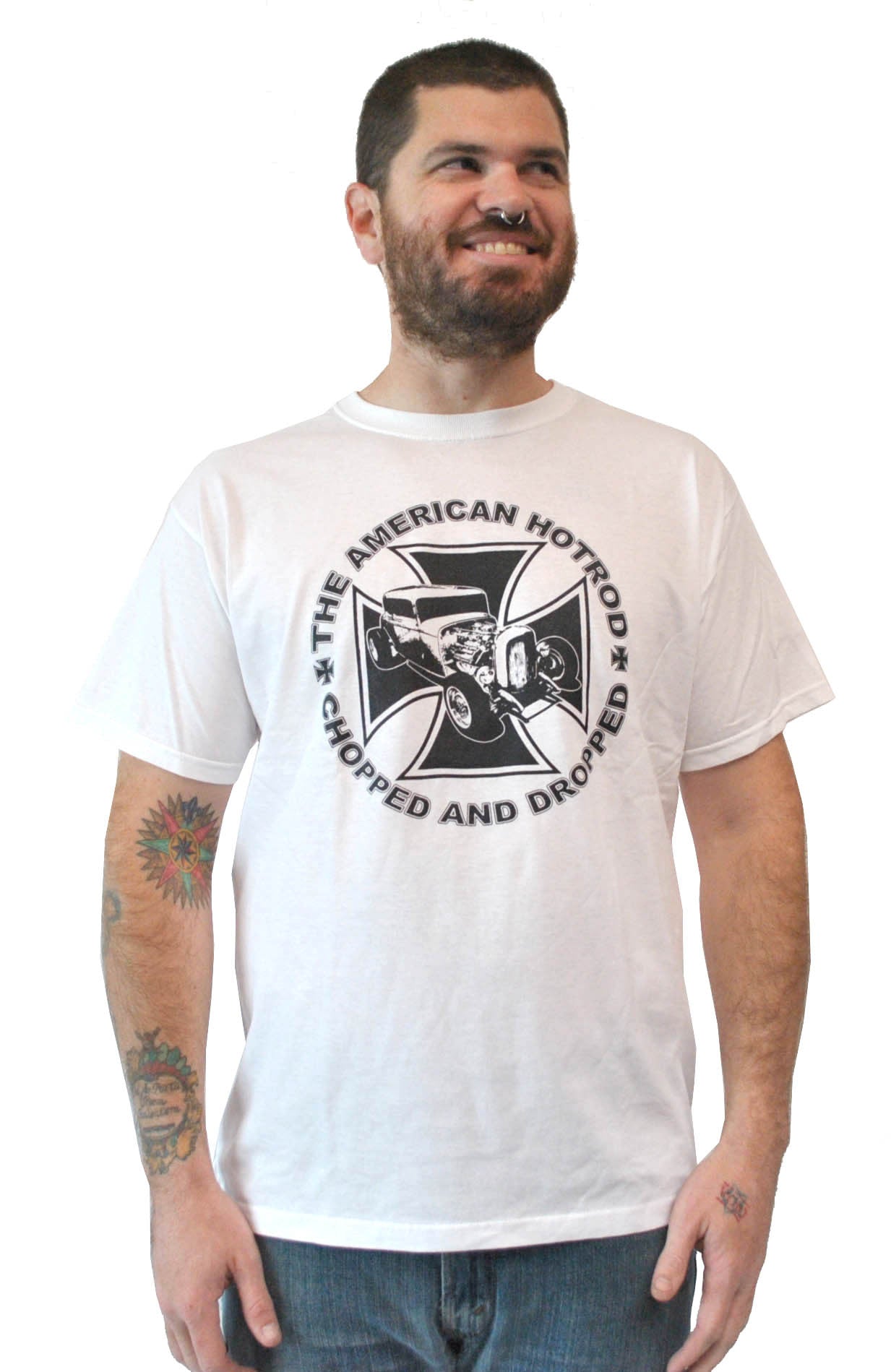 Design by Lucky Mule. One color large print, black ink on white tee.