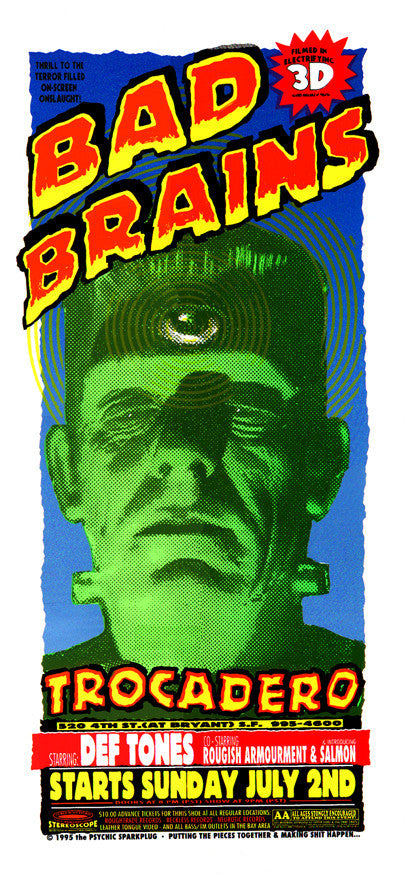 Show poster for Bad Brains and DefTones at the Trocadero SF July 2nd 1995