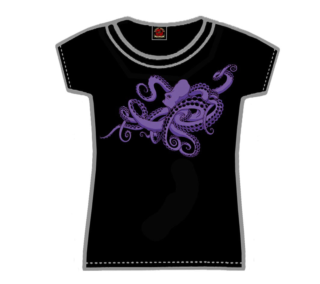 Designed by Oakland Tattoo artist Frank Lopez. Two color print, light purple and dark purple ink on black.