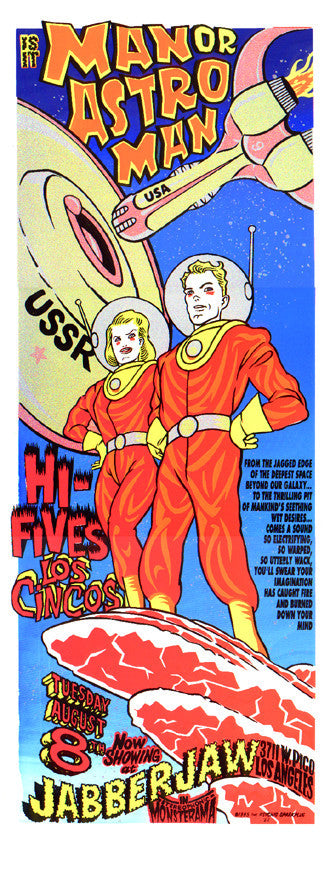 Man Or Astro Man, Hi-Fives and Los Cinco screen printed show poster at Jabberjaw LA, CA Aug. 8th 1995.