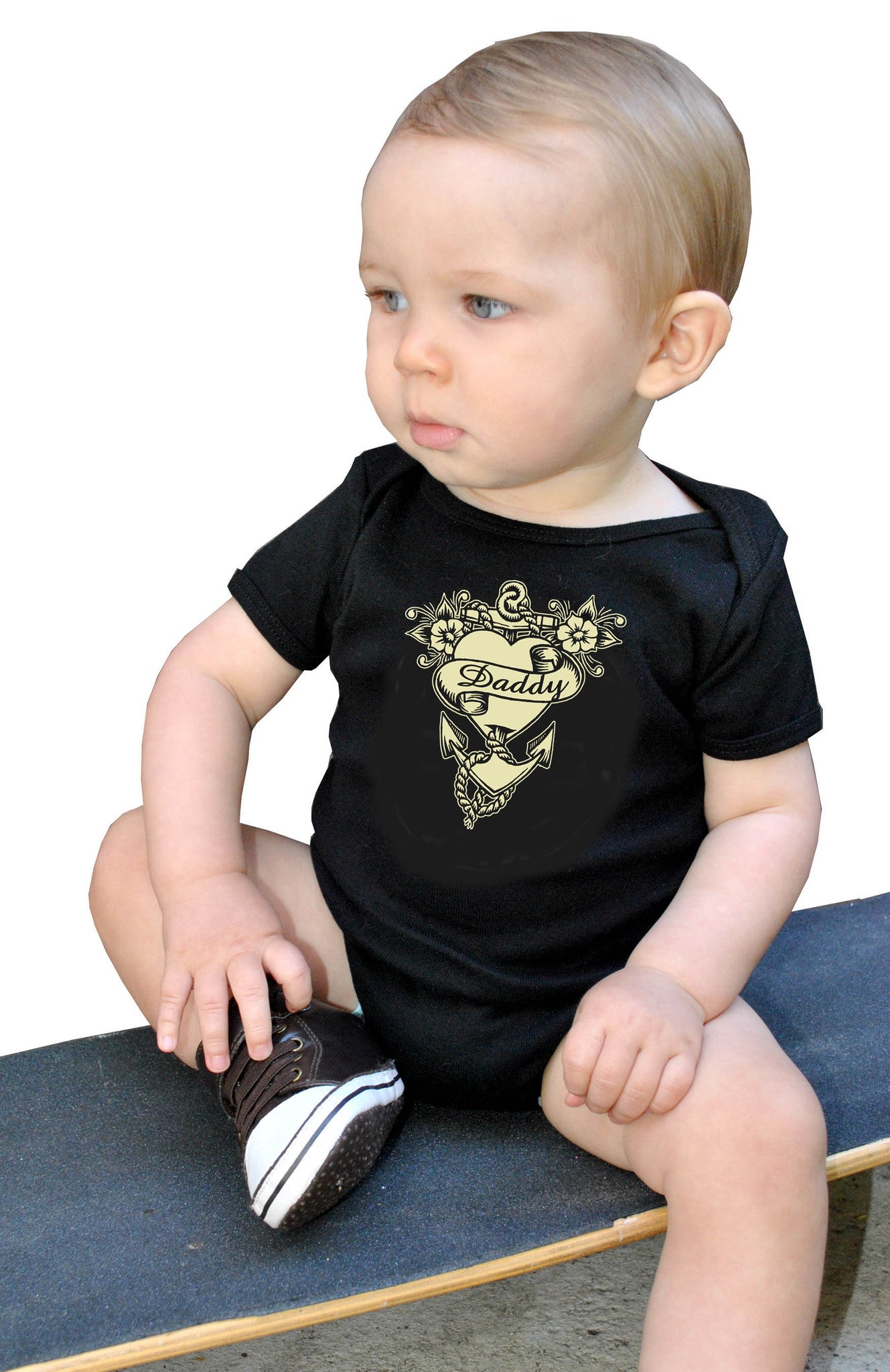 Classic Tattoo style heart n anchor with flowers and banner that reads " Daddy" in script. Perfect gift for a proud new pappa.