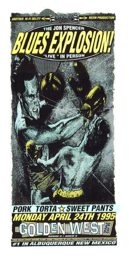 Resin Records show poster for the Jon Spencer Blues Explosion, Pork Torta and Sweet Pants at the Golden West, Albuquerque NM April 24th 1995