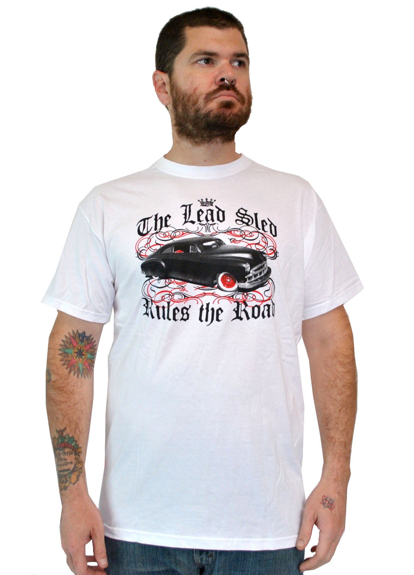 Custom Leadslead with red rims surrounded by black and red fillagree. Lead slead rules the road.