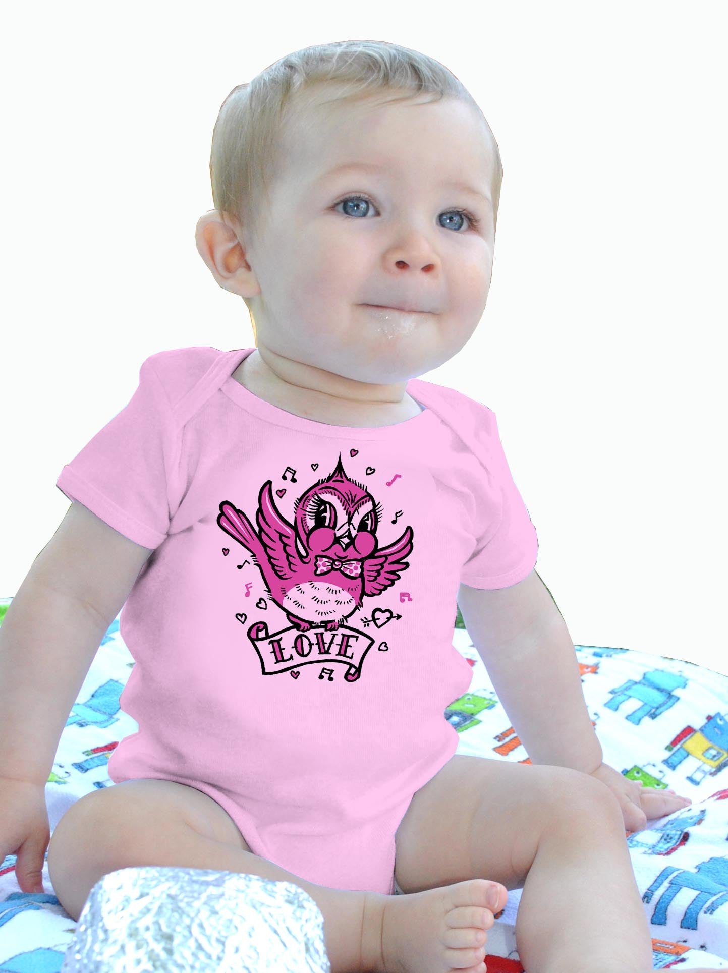 You will fall in love with this Super cute love bird. Also available on light blue ladies tee for mom.