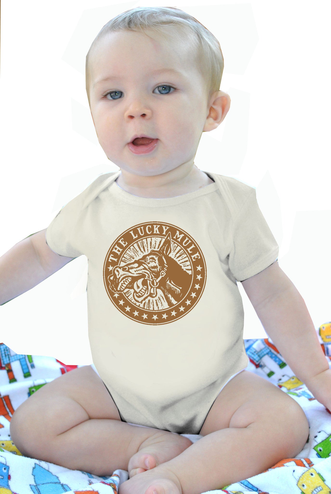 Your little rug rat will be the talk of the town in this super cute Lucky Mule onesie with laughing mule on it. Also available on a kids tee.