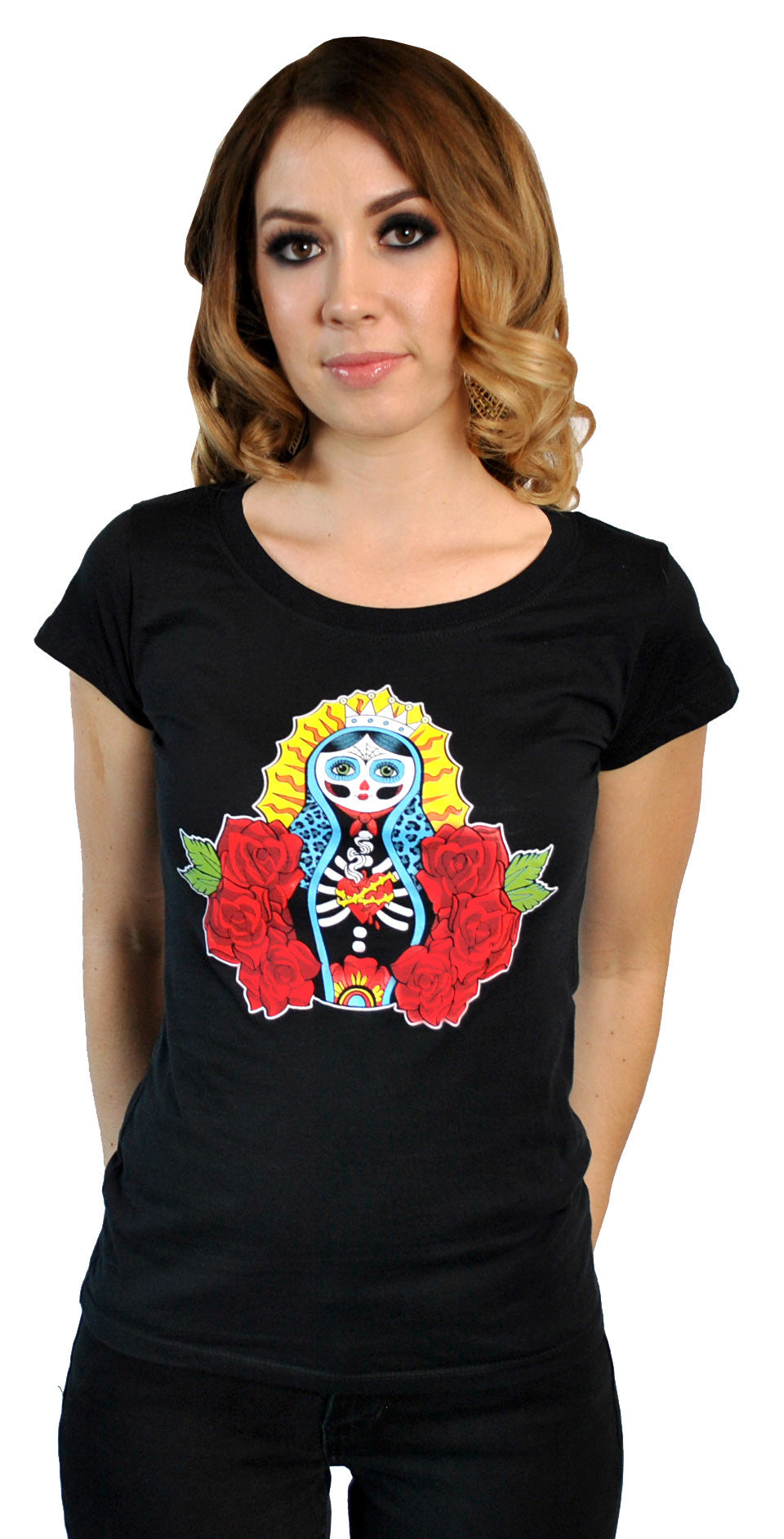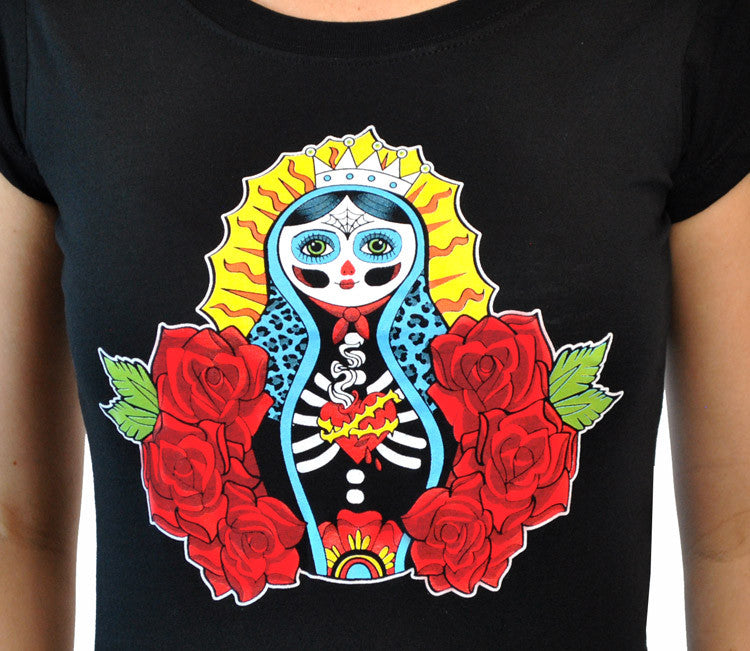 Russian style Madona neasting doll with roses. Also available on a kids tee.