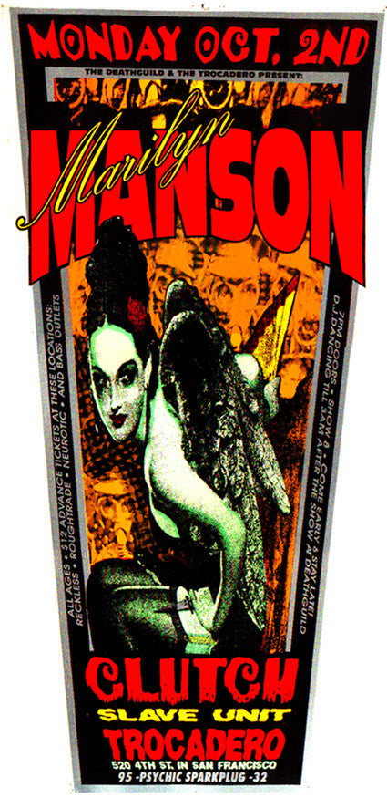 Show poster for Marilyn Manson, Clutch and Slave Unit at the Trocadero SF Oct. 2nd 1995