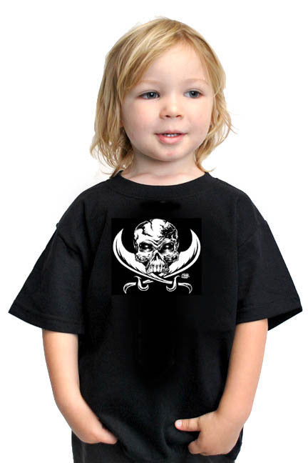 Aaaarrrrggh you little dude will be sailing the high seas in search of loot in this Pirate tee. Also available on an men's tee.