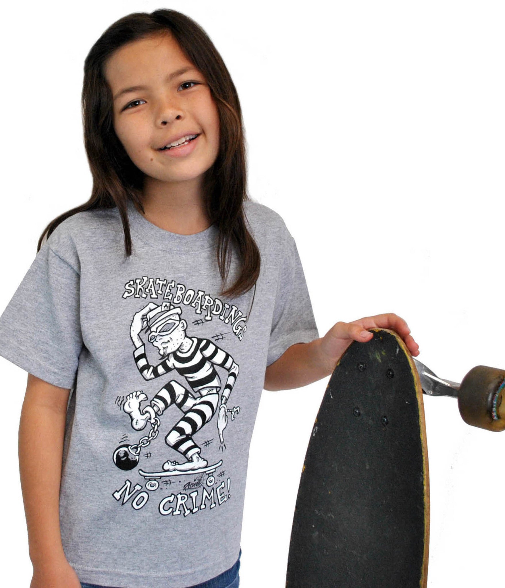 Live to skate, skating is no crime. Your kid will be surfin' the sidewalks in this cool tee.