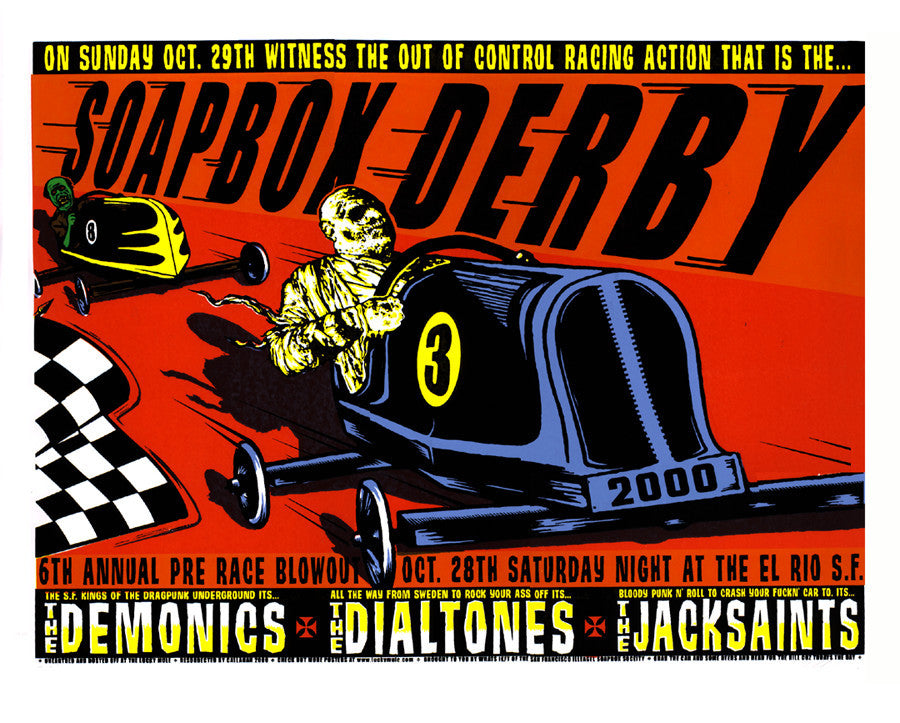 The Demonics, The Dialtones and The Jacksaints screen printed Halloween show poster at the El Rio SF CA Oct 28th 2000.